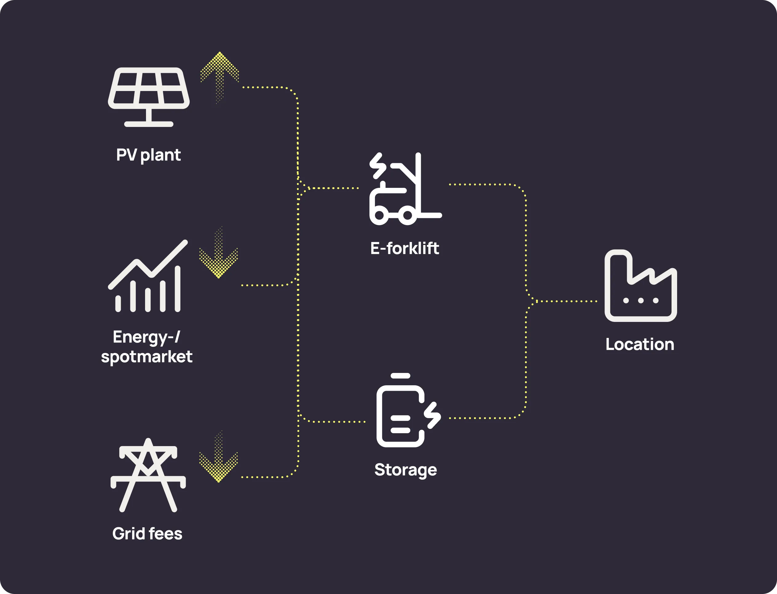 With our smart energy management system, you can integrate the charging infrastructure of your electric HGVs or industrial trucks (FFZ) into your site-wide optimisation strategy. This ensures that your vehicles are charged whenever electricity is both green and affordable, while the maximum grid connection capacity is always taken into account.