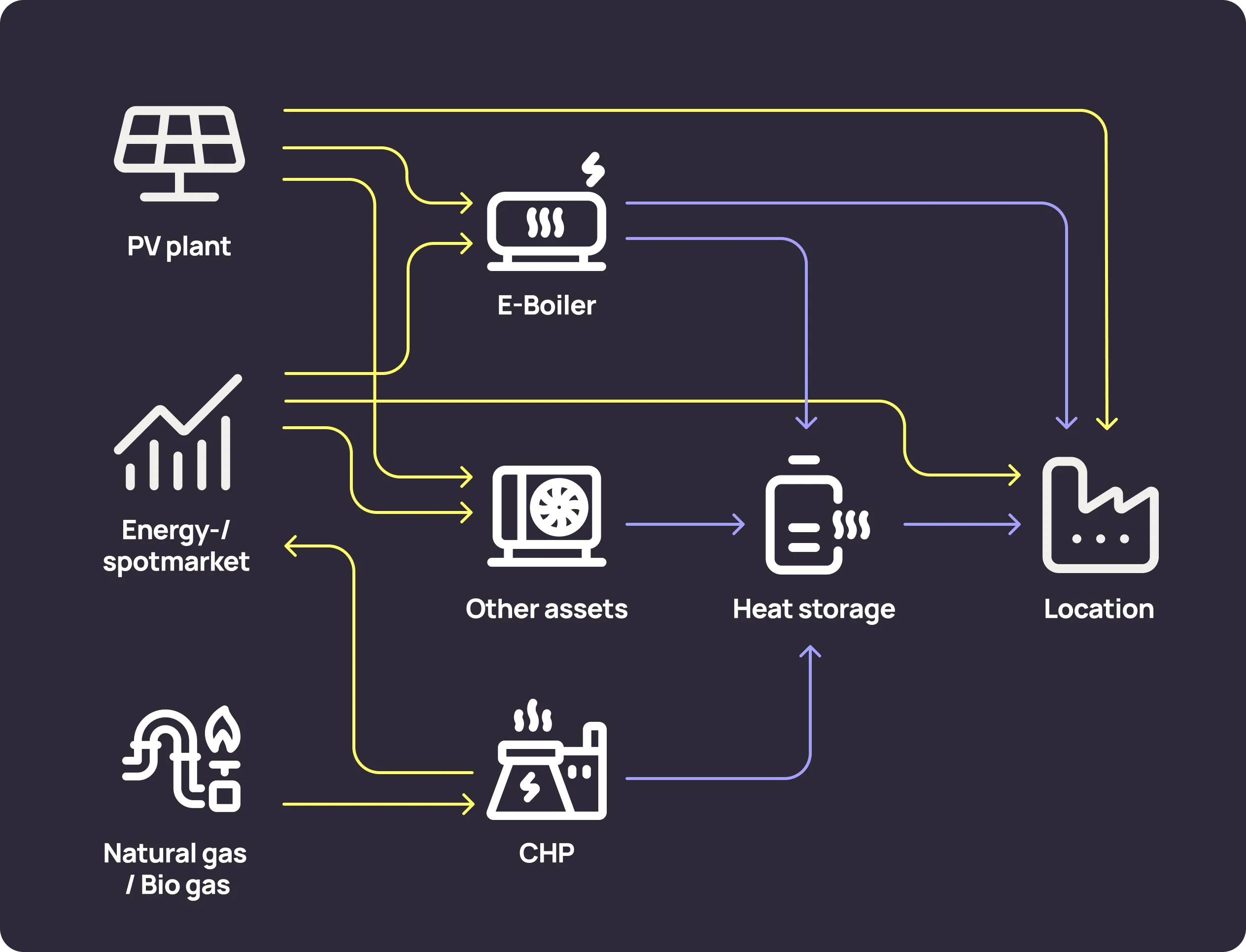 We support you in electrifying your heat supply through the fully automated coordination of your various heat generation systems.